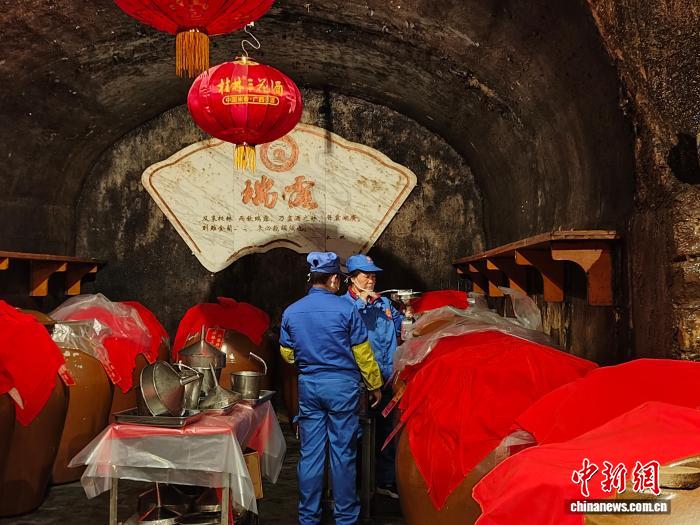 2月8日是中国农历腊月二十一,临近丙午马年春节,广西桂林市城徽象鼻山脚下的千年象山酒窖开窖迎新春。
