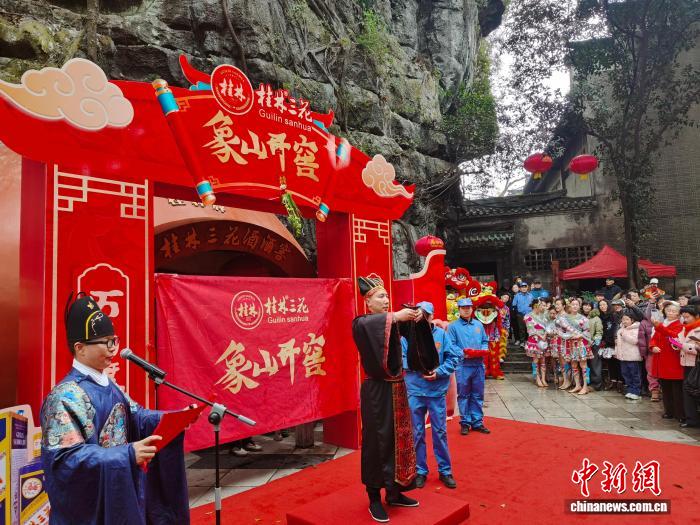 当天10时,开场曲二胡笛子伴奏《赛马》、祭天地酒神传统仪式、舞蹈《八桂酒香》、戏剧表演《变脸》和舞狮采青相继在象鼻山脚下为市民游客精彩演绎。