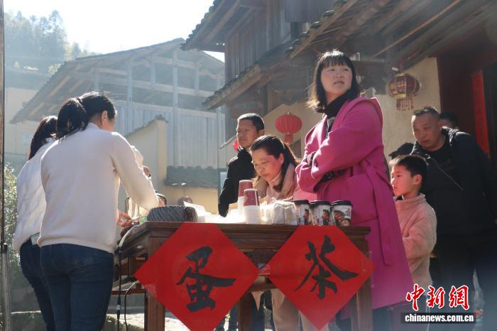 来自浙江省温州市的游客胡乐说,这是他第一次喝蛋茶,味道很特别,茶味也很香浓,“村庄的年味很足,也感受到屏南独特的年俗。”