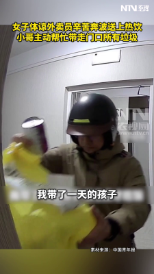 女子体谅外卖员辛苦奔波送上热饮,小哥主动帮忙带走门…