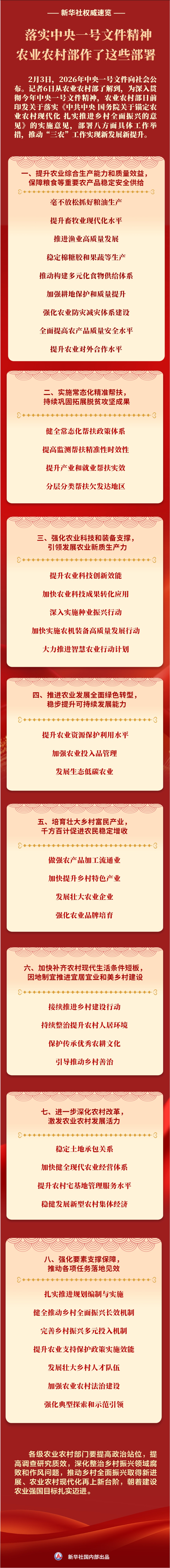 新华社权威速览丨落实中央一号文件精神,农业农村部作了这些部署