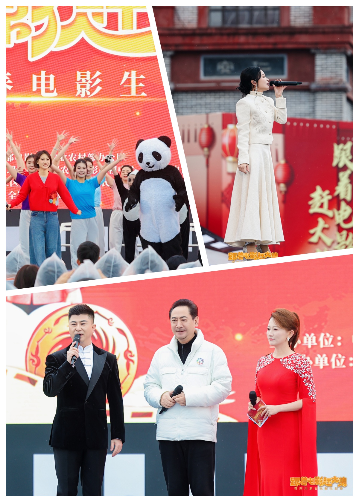 启动仪式由中国农业电影电视中心刘栋栋、邓心祎联袂主持,启动仪式以胶卷舞台营造沉浸式光影氛围,通过《光影探源·寻迹四川》《光影聚艺·群星荟萃》《光影启程·锦绣未来》三大篇章文艺展演,融合非遗创新、科技演绎,演员刘劲、啜妮,歌手黄英倾情助阵,川剧变脸、票根抽奖等环节点燃现场热度,打造兼具政策落地性与群众参与感的光影盛典,让贺岁新片宣传与公益放映推广同频共振。
