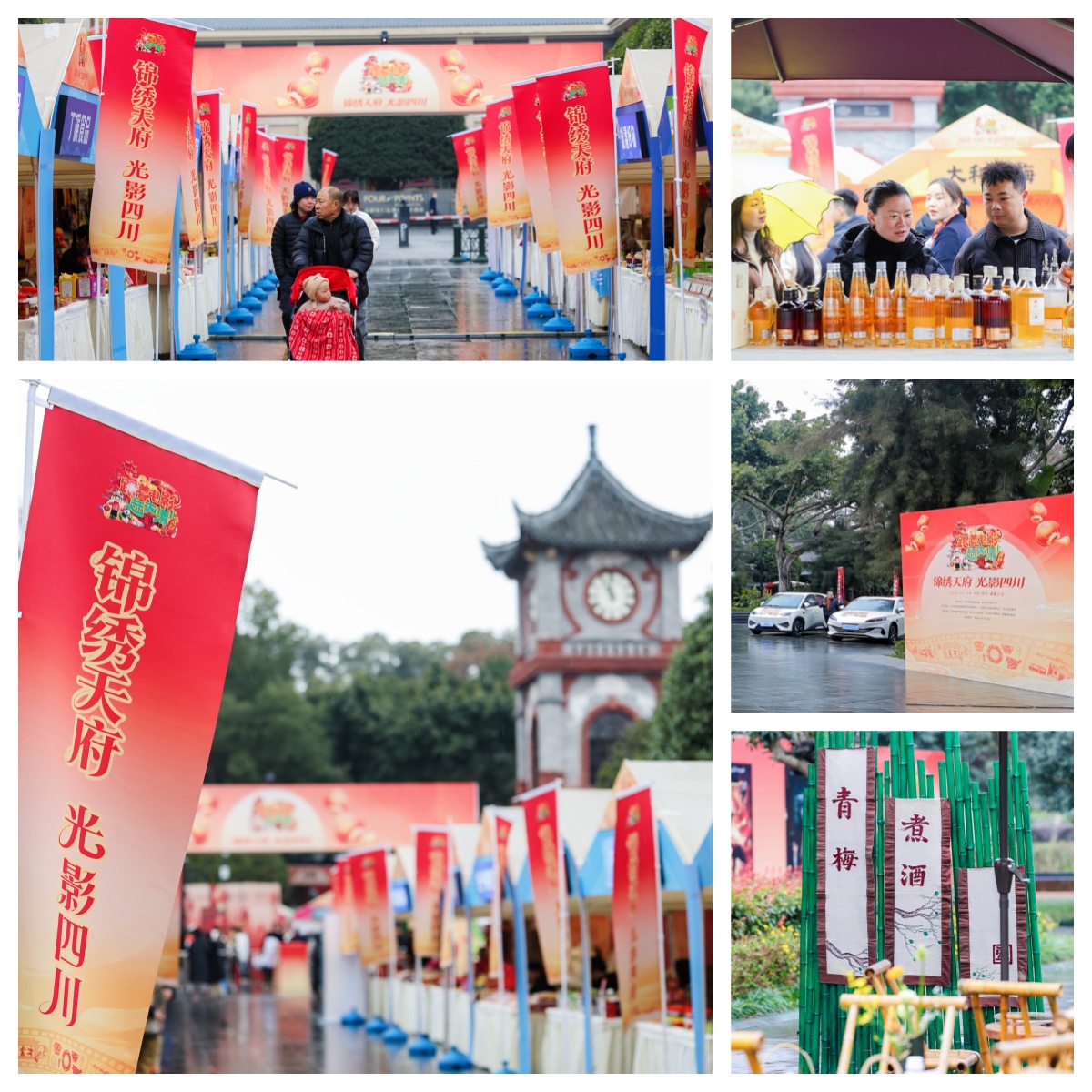本次活动创新采用“一古一今、双城联动”模式,精准匹配古镇文旅、都市商圈不同消费场景需求,实现电影文化与地方特色、贺岁档新片与公益放映深度融合。在大邑安仁古镇会场(坝子广场至老街区域),活动将持续打造一场“电影+”新春主题市集。核心围绕“电影+文旅+农特消费”,集合了电影主题打卡、非遗手作体验、地道美食展销、文创集章互动等丰富内容,营造出浓厚的节日氛围。