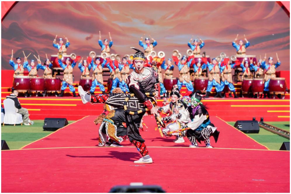 活动现场,潮南西岐英歌与素有“天下第一鼓”美誉的山西威风锣鼓强强联动,更与双节棍世界冠军谢德胜跨界合作,刚劲英武、气势如虹,南北民俗同台碰撞,成为晚会亮眼看点。