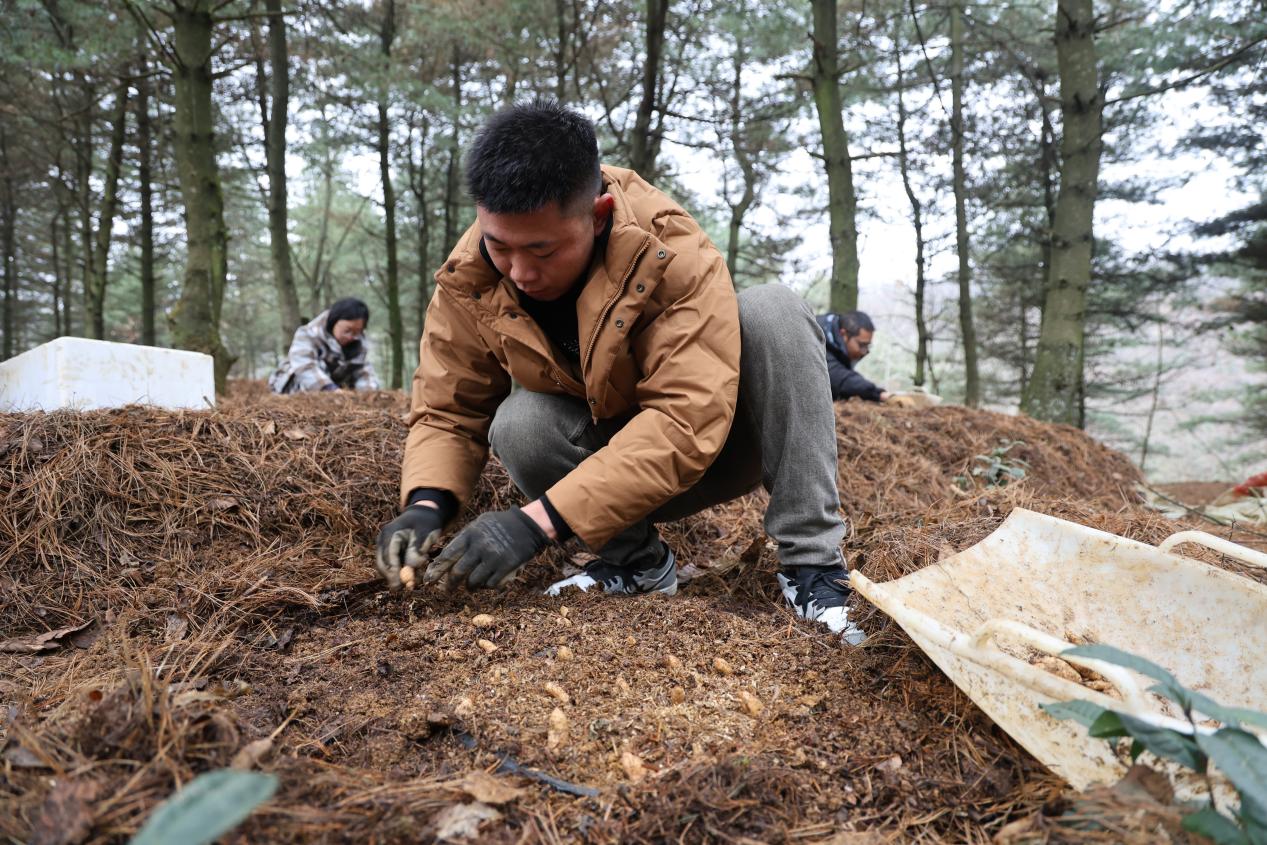 春到乌蒙,万物复苏。立春以来,贵州省毕节市气温回升,山野间春意渐浓。在七星关区朱昌镇发启村的连片林地里,村民们正弯腰忙碌,挖坑、放种、盖土、压实,一道道工序有条不紊,抢抓春耕黄金期播下天麻种子,也播下了新一年的增收希望。
