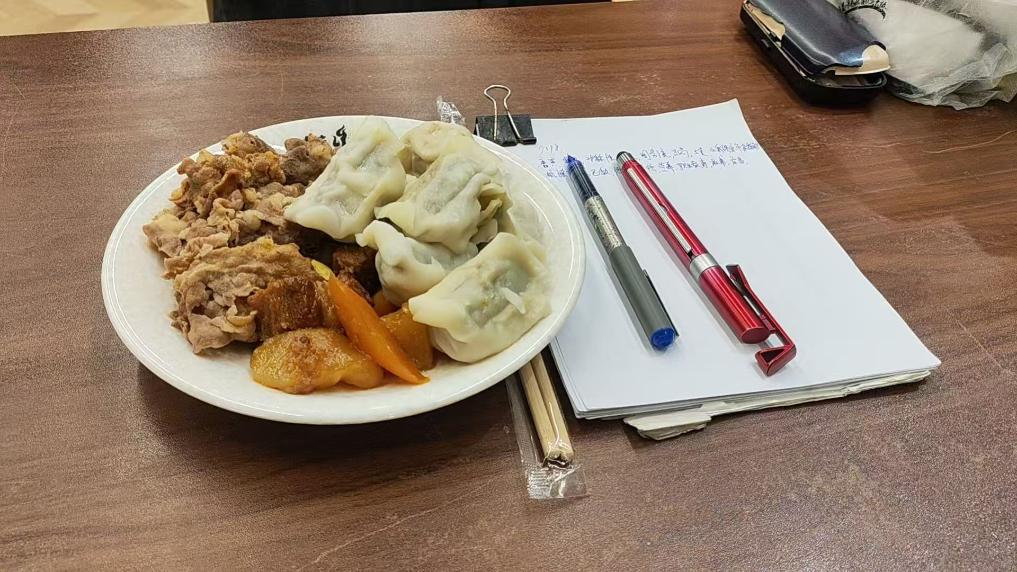 2月16日,除夕夜,宣南书店(法源寺店)为方新美送上的饭。新华社发