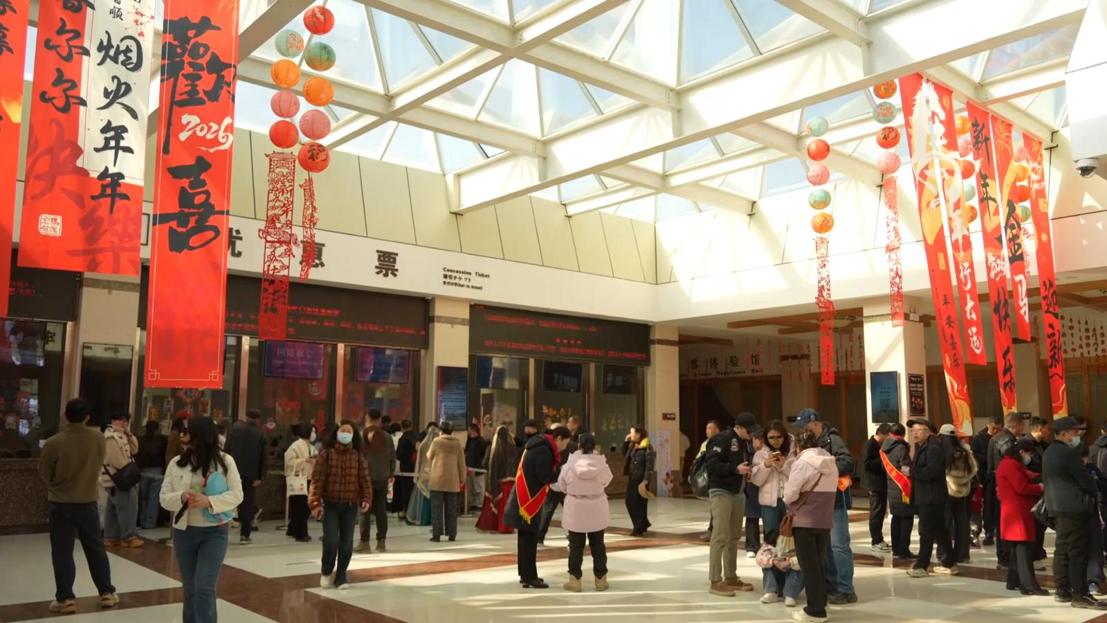 2月19日大年初三,敦煌鸣沙山月牙泉景区张灯结彩,游人众多,暖阳与欢笑交织,处处洋溢着“敦煌式中国年”的独特韵味。