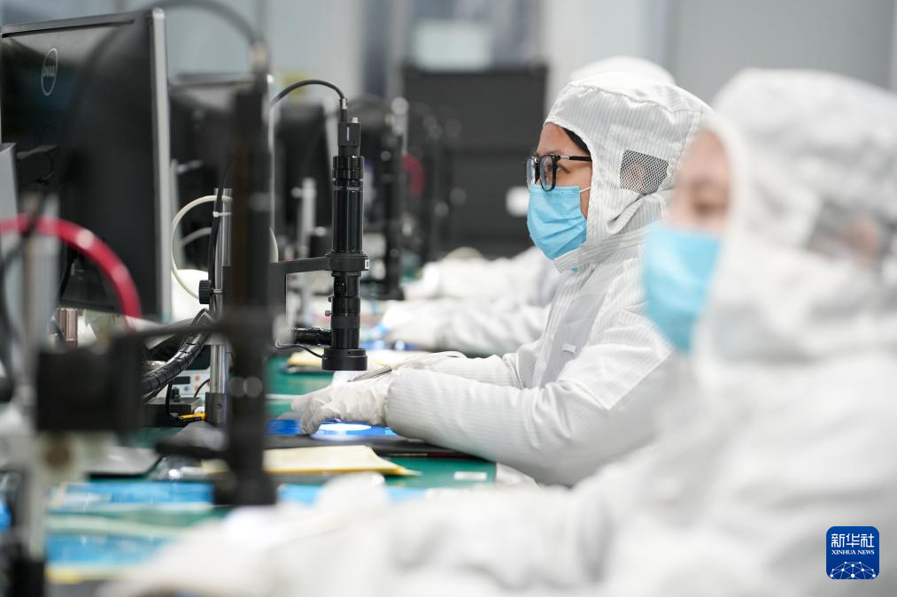 2月24日,在江苏省盐城市射阳县的江苏暖阳半导体科技有限公司生产车间,工人进行半导体芯片的测试分选。