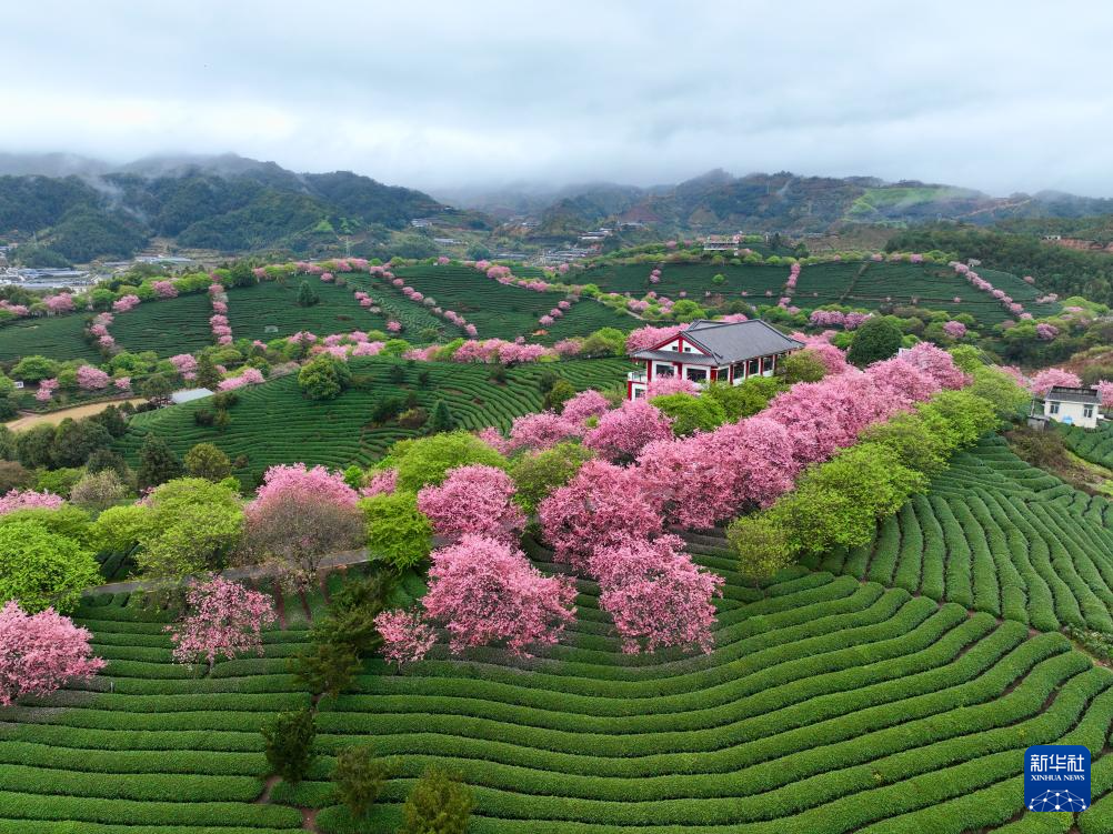 这是2月28日拍摄的福建省漳平市永福镇台品樱花茶园美景(无人机照片)。