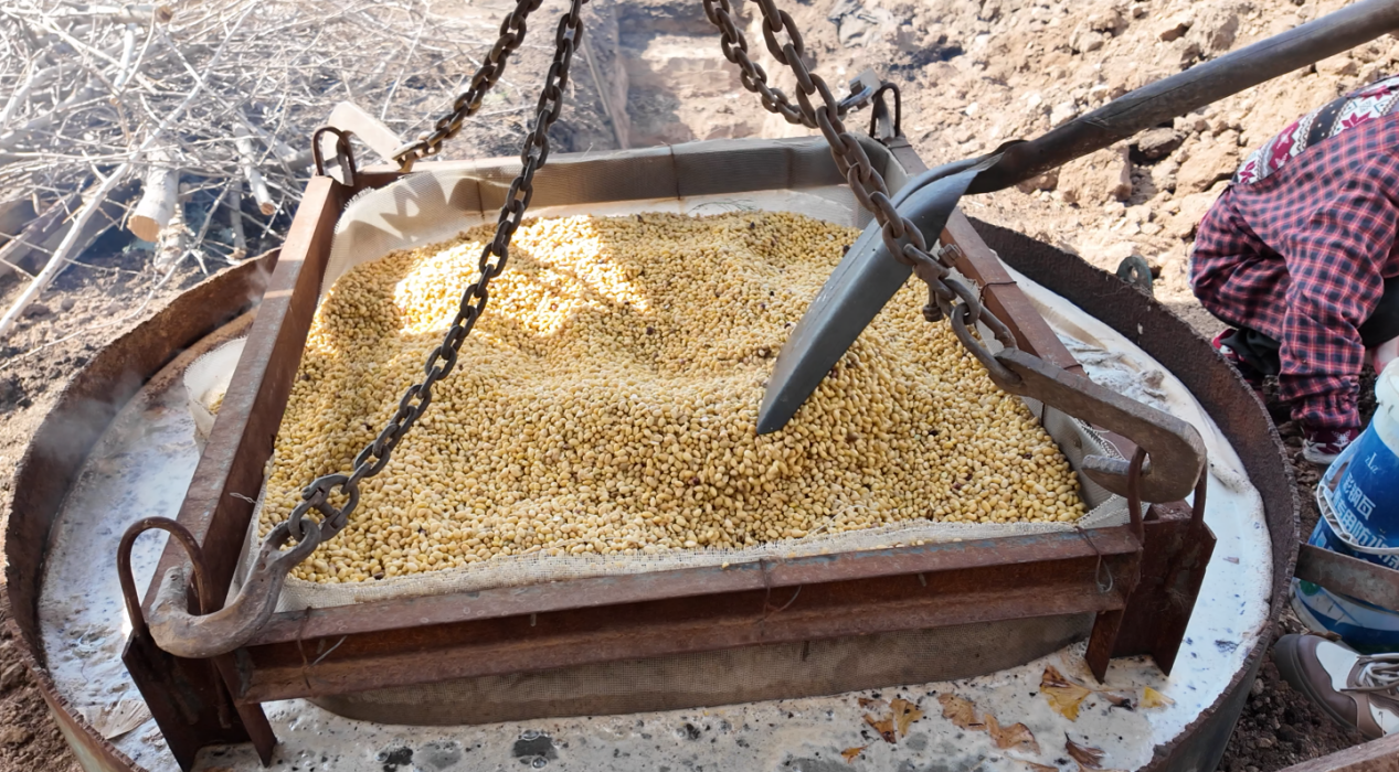 3月初的豫北平原,夜间的气温还在零下。但在河南焦作温县的一处铁棍山药种植基地,天刚蒙蒙亮,一口大铁锅已经架上了土灶。灶膛里柴火噼啪作响,锅里的黄豆在沸水中翻滚,豆香裹着热气,在晨雾中飘散开去。