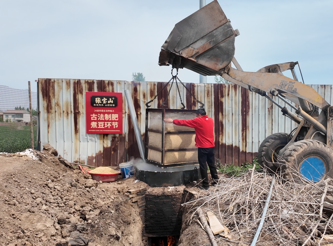 这是温县铁棍山药核心产区延续上百年的古法农事——惊蛰前后煮豆沤肥。大豆煮熟、晾凉,再深翻入已经养了多年的土地里。不用化肥,只用大豆肥和氨基酸肥,是这里“好地出好山药”的第一道关口。