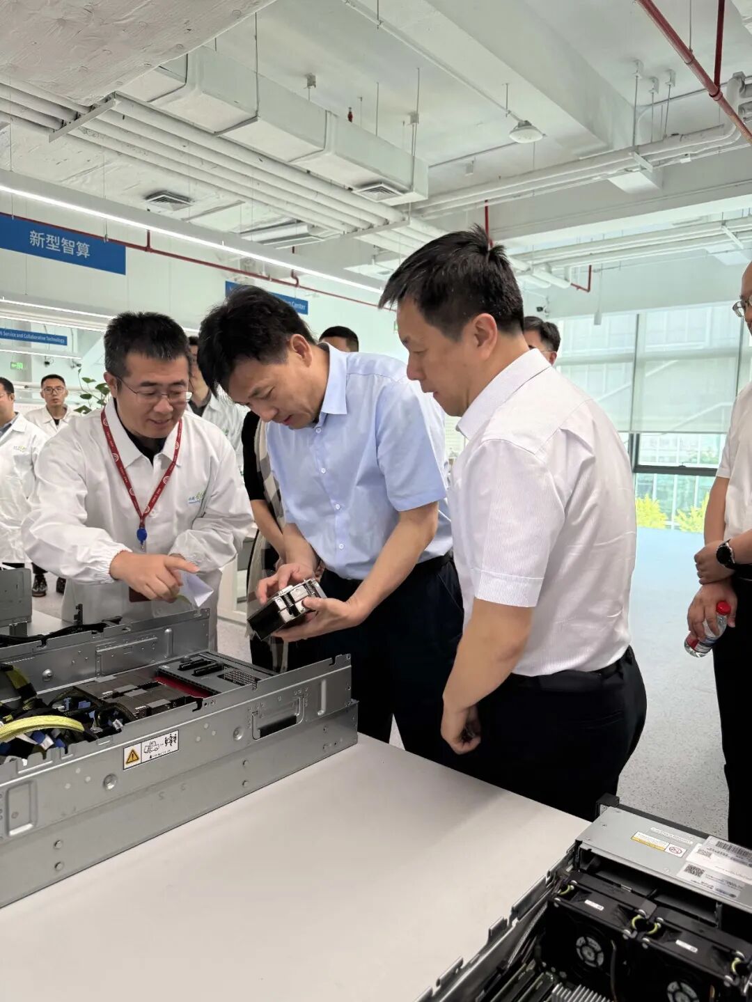 程建军(左二)在中国移动研发基地调研。