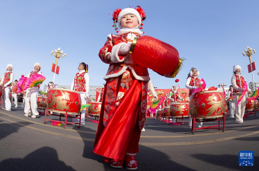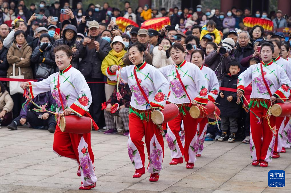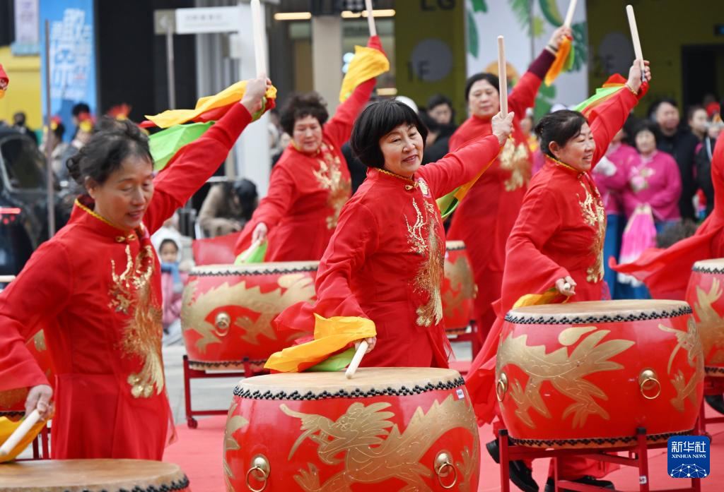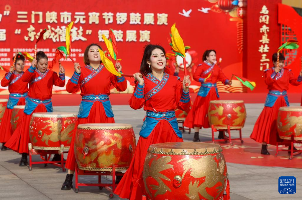 3月3日,锣鼓队在河南省三门峡国际文博城西广场进行锣鼓展演。