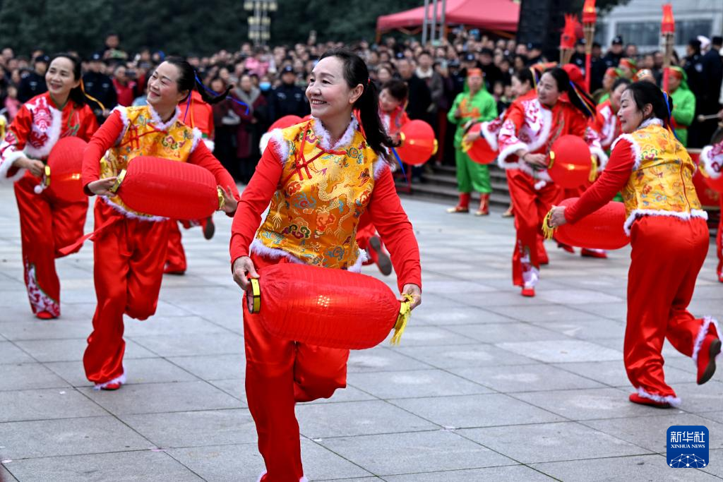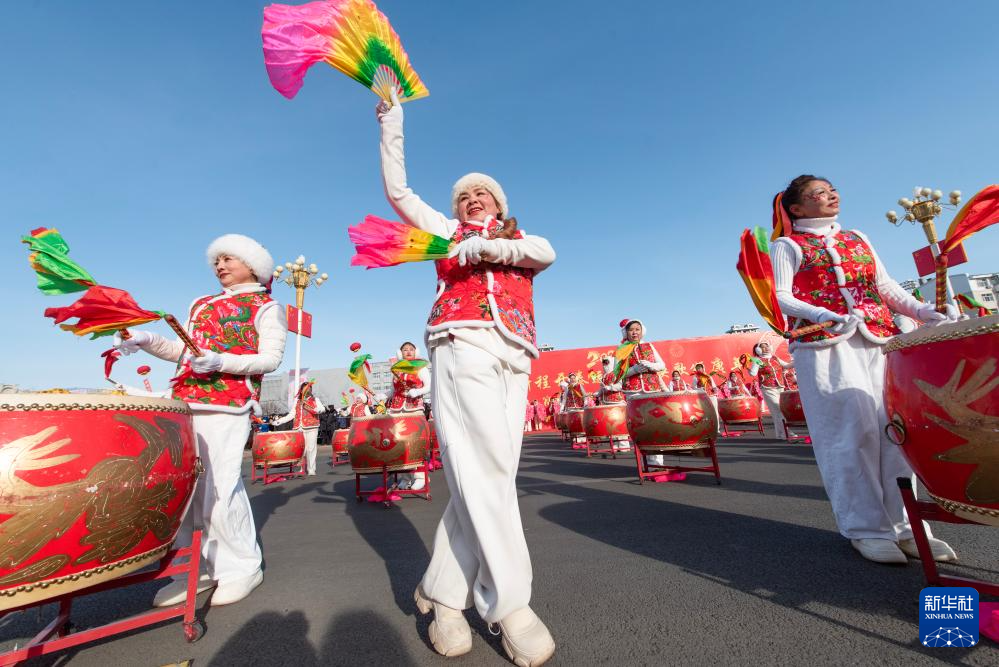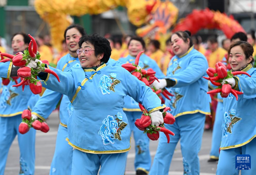 3月3日,在黑龙江省同江市,人们扭起欢快的秧歌舞欢庆元宵佳节。