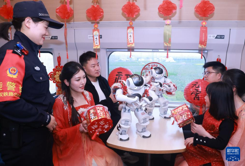 3月3日,在汉口开往宜昌东的D5803次列车上,智能机器人为旅客表演节目。