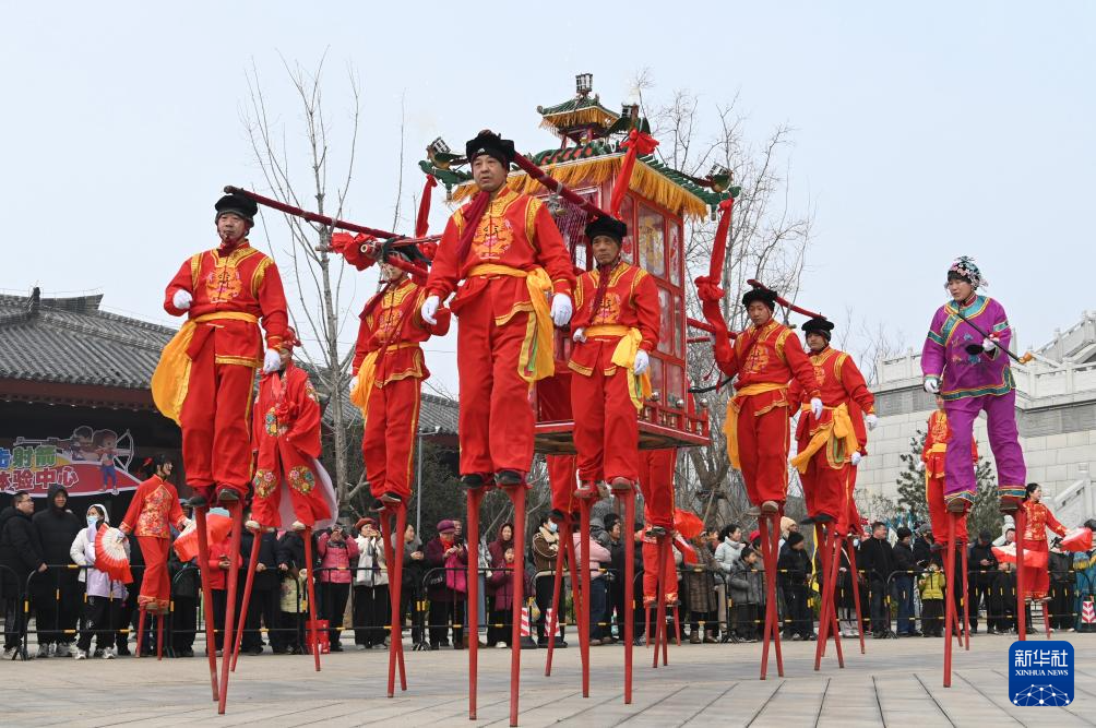 3月3日,民间艺人在河南省焦作市非遗精品项目展演活动上表演“高抬火轿”。