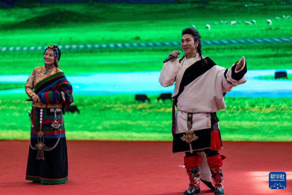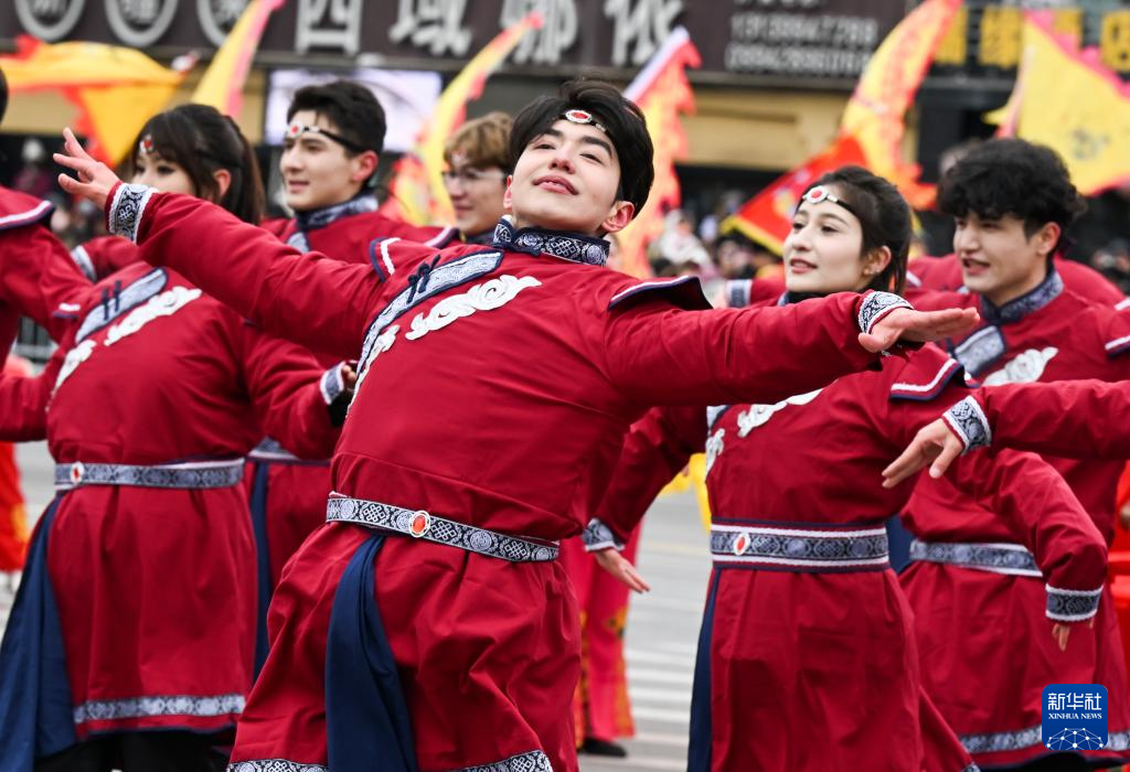 3月3日,演员在青海省黄南藏族自治州举行的锅庄展演活动中表演。