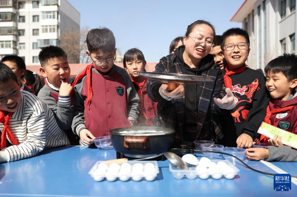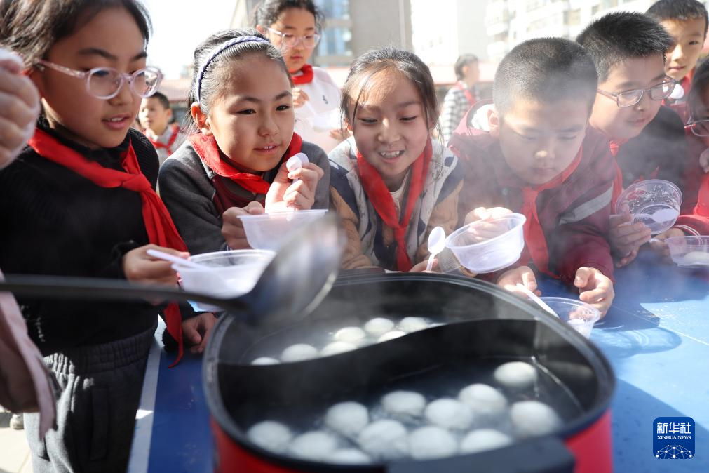 3月3日,甘肃省兰州市东郊学校的学生在校园元宵节民俗活动上煮元宵。