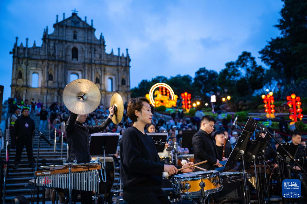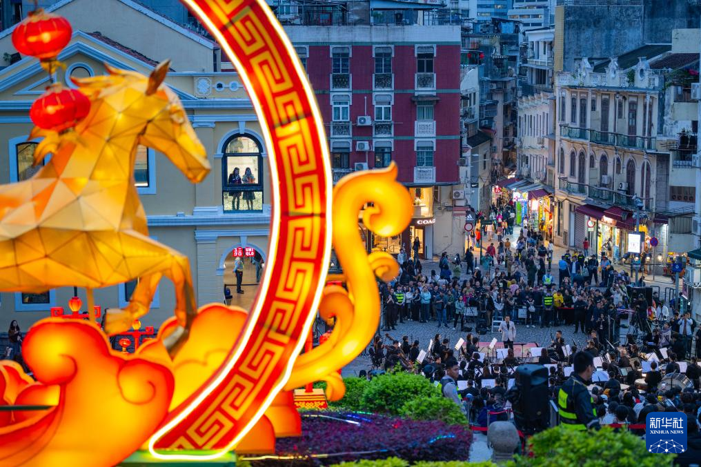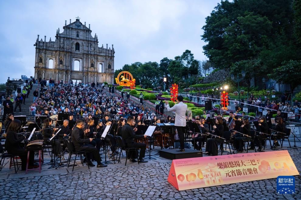 这是3月3日在澳门大三巴牌坊前拍摄的“乐韵悠扬大三巴”元宵节音乐会现场。