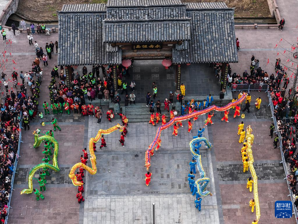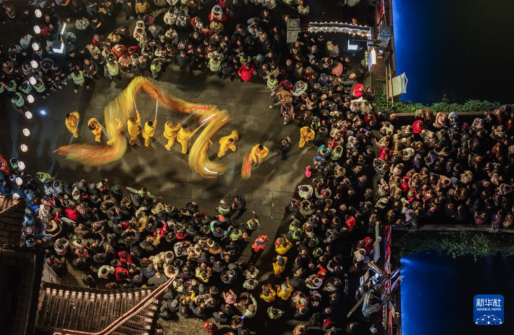 这是3月3日在浙江省建德市寿昌镇拍摄的“五龙献瑞闹元宵”活动现场(无人机照片)。