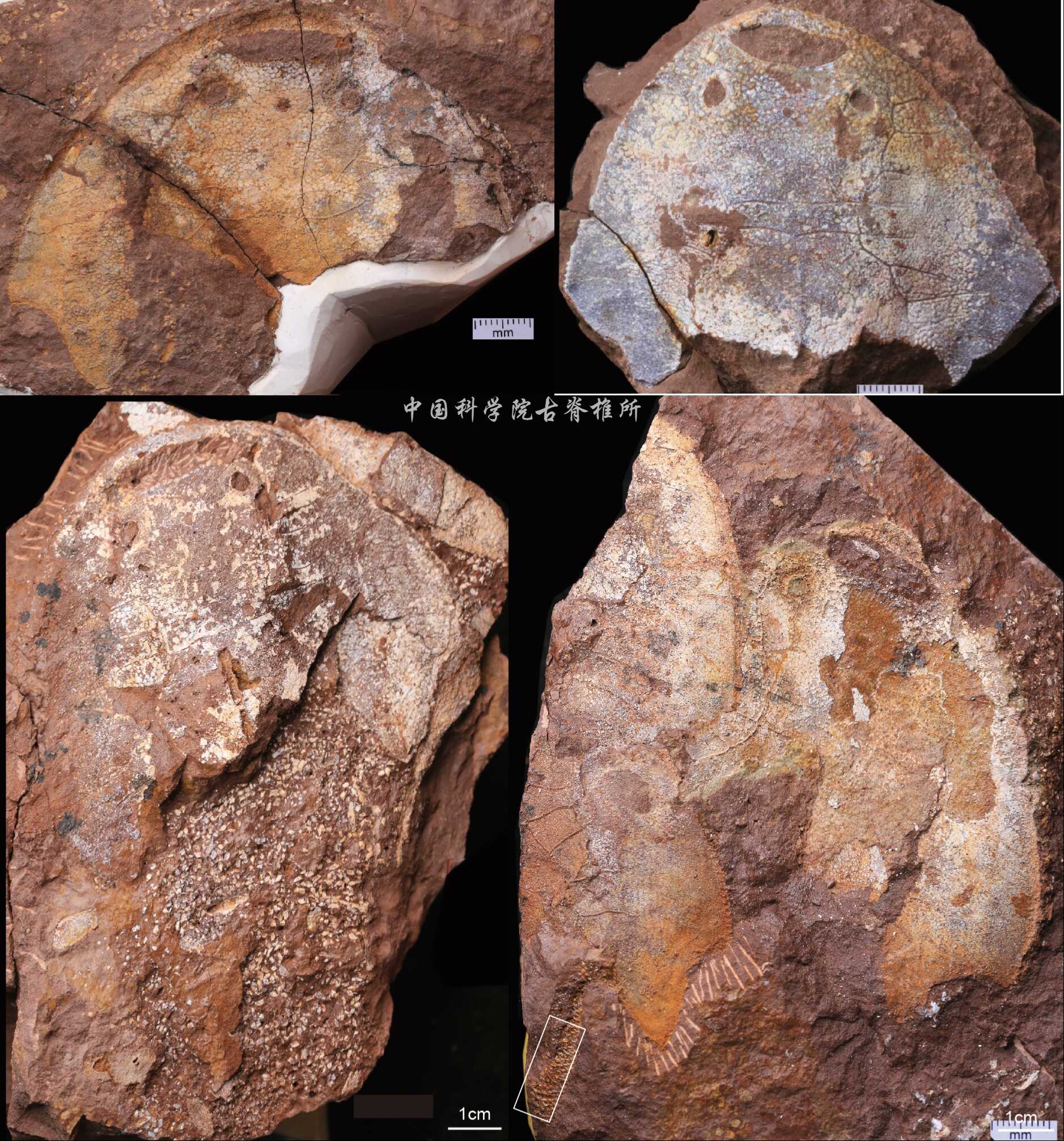 研究还首次详细描述盔甲鱼类的躯干鳞片形态。化石证据显示,武宁西海鱼的躯干鳞片呈斜向排列,形成无关节、无叠覆的竹席状结构。其中,多数鳞片为单瘤点结构,与构成头甲的多瘤点复合骨板形成鲜明对比。此外,部分标本中还保存类似背棘的结构,为进一步重建盔甲鱼类的躯干形态提供了重要依据。