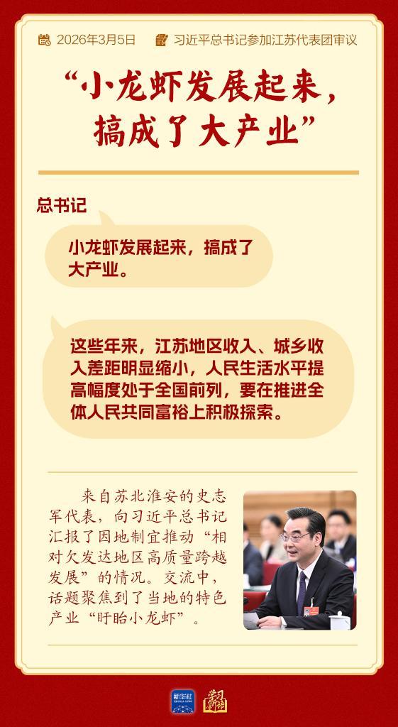 “小龙虾发展起来,搞成了大产业。”总书记笑着说。