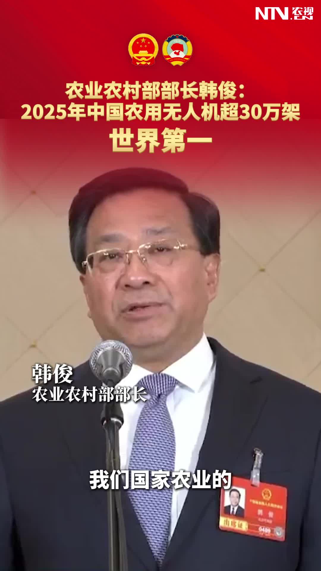 农业农村部部长韩俊:2025年中国农用无人机超30…