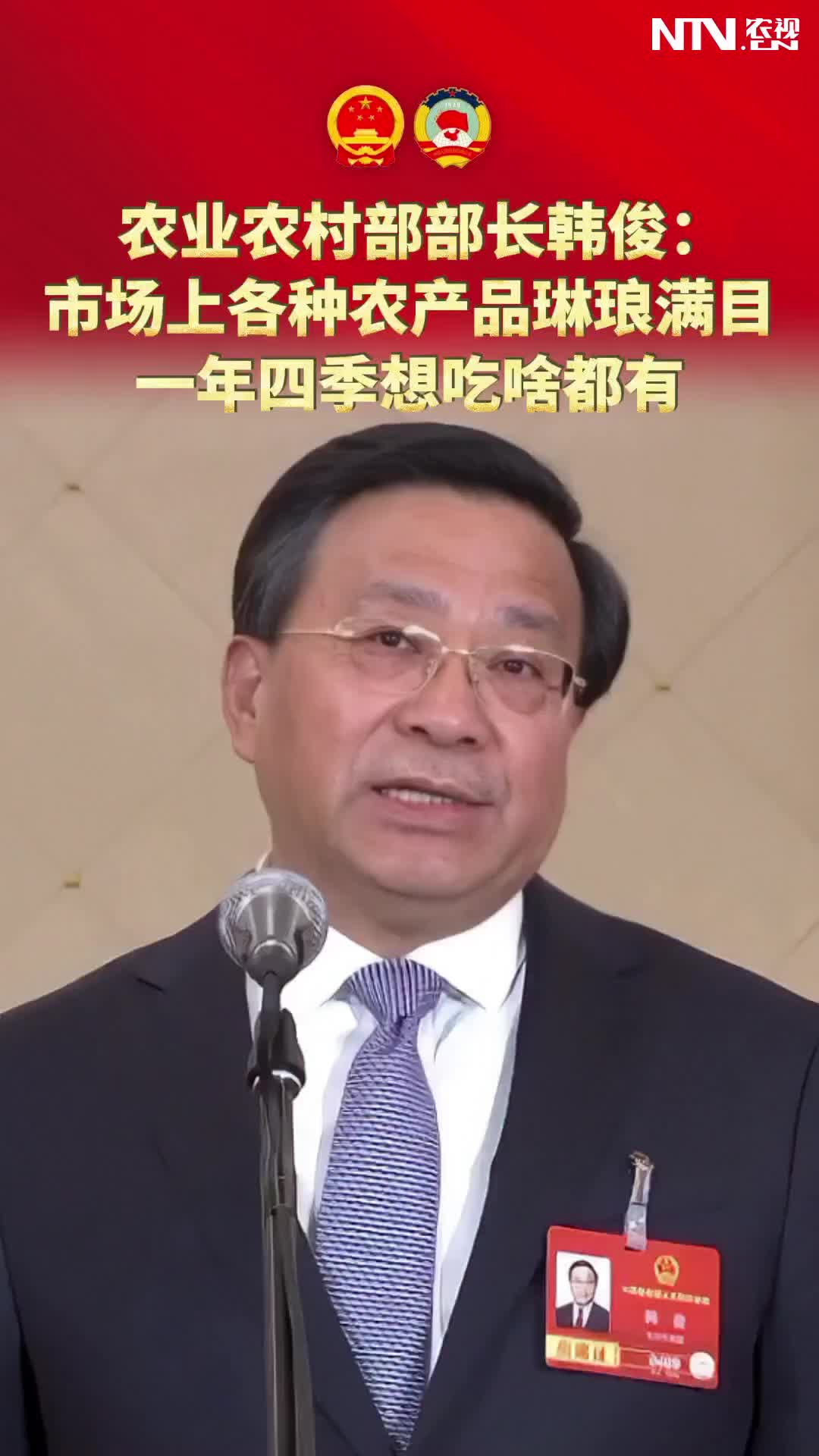 农业农村部部长韩俊:市场上各种农产品琳琅满目 一年…