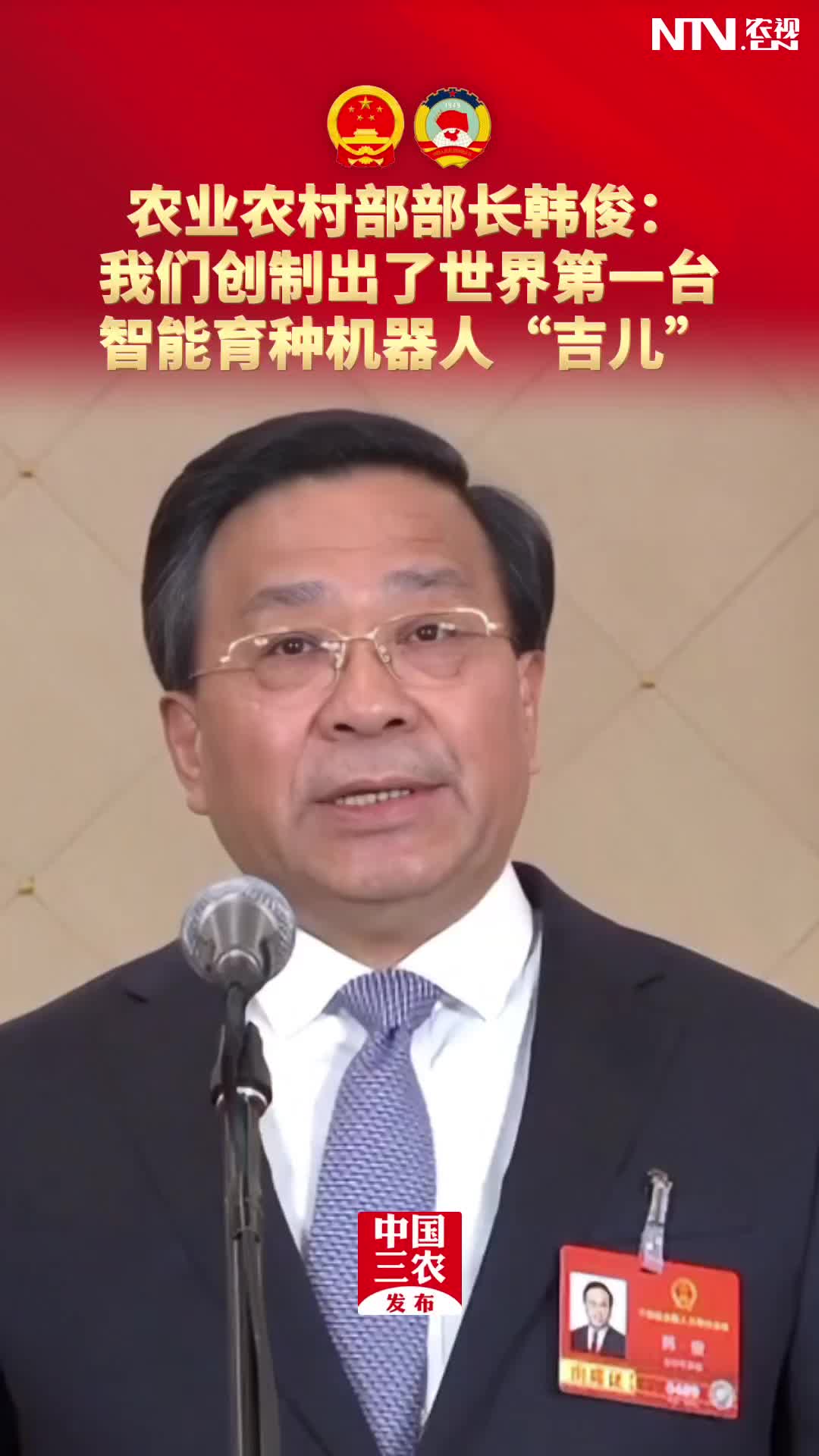 农业农村部部长韩俊:我们创制出了世界第一台智能育种…