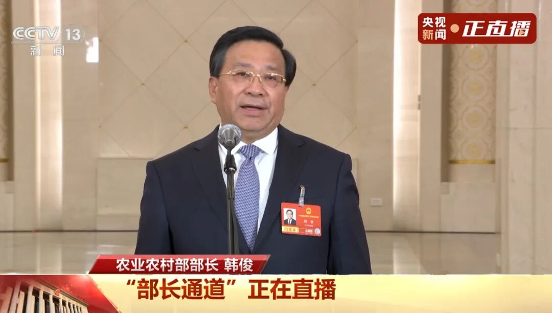 部长通道 | 农业农村部部长韩俊:蔬菜、畜禽、水产品等当家品种立足国内有保障
