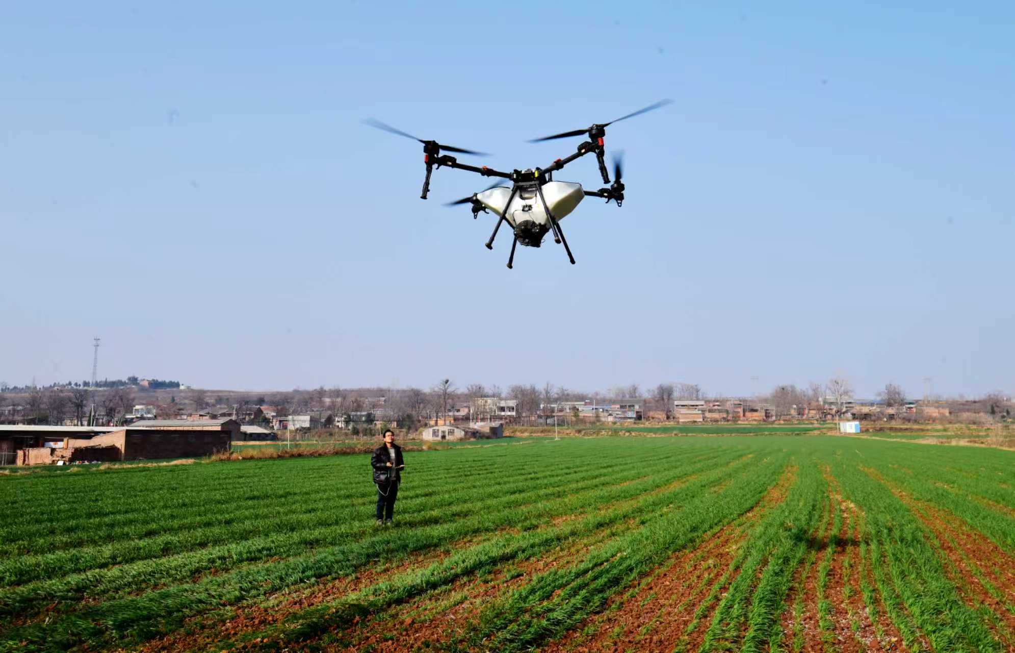 眼下正值春耕备耕关键时节,在河南省洛阳市孟津区送庄镇清河村的麦田里,一场与春雨赛跑的追肥作业正在紧张进行。横水镇“农事服务中心”的无人机飞手操作农用无人机,为种粮大户周四的麦田精准施肥。在冰雪消融的田野上空,无人机沿着规整航线穿梭,颗粒追肥均匀沉降,成为当地春管作业的“新宠”。