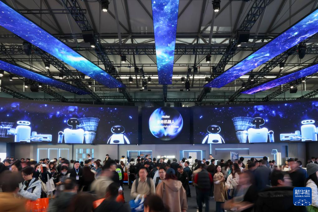 3月12日,人们在海尔展台参观。