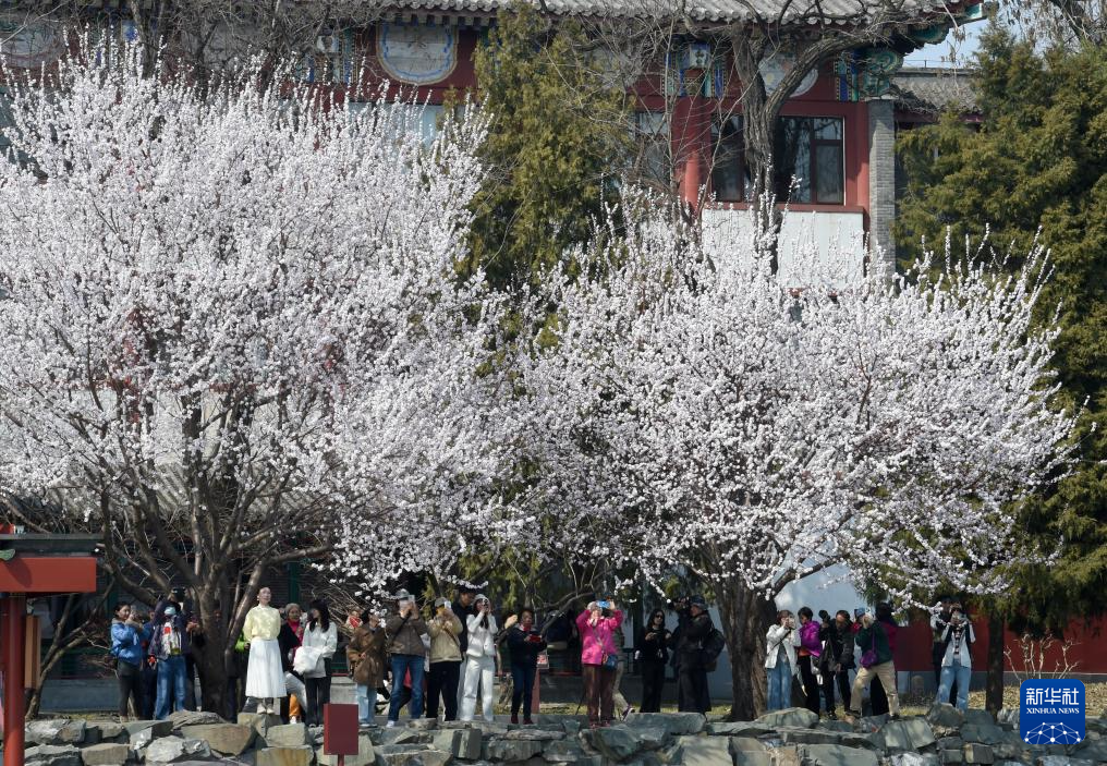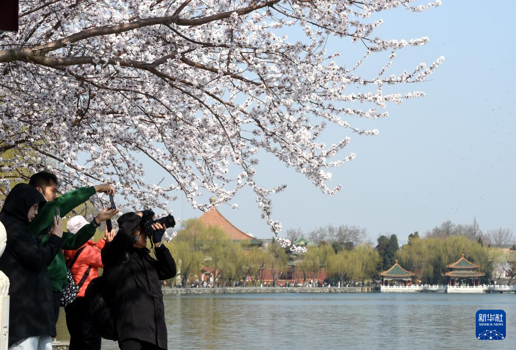 3月16日,游客在北京北海公园拍摄照片。