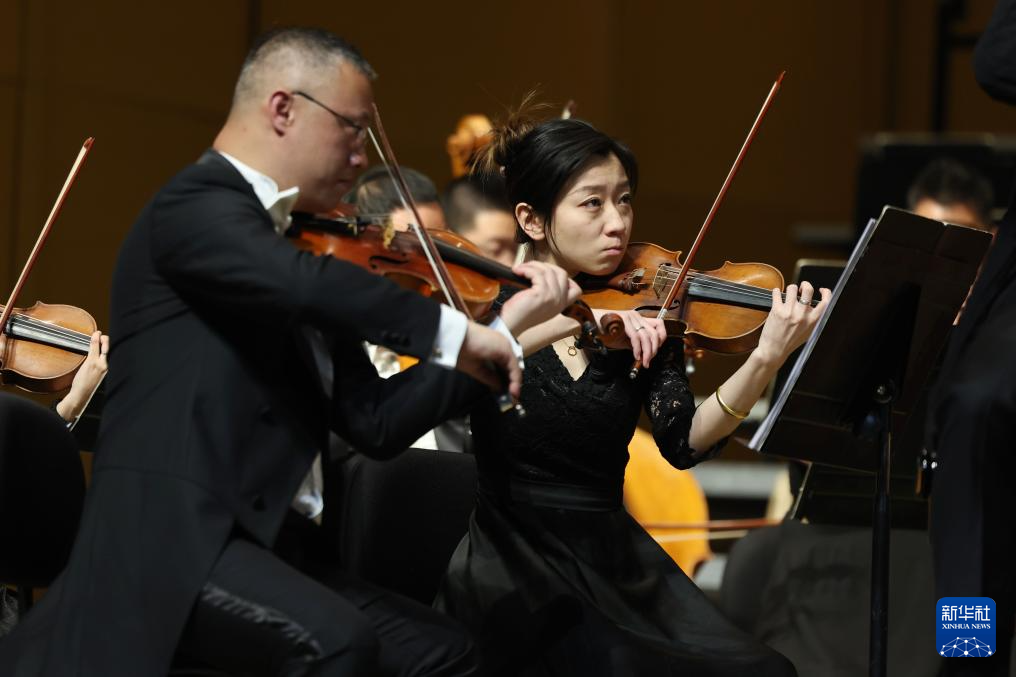3月20日,兰州交响乐团的小提琴演奏员李馨逸(右)在黄河·兰州2026音乐季的开幕音乐会上表演。