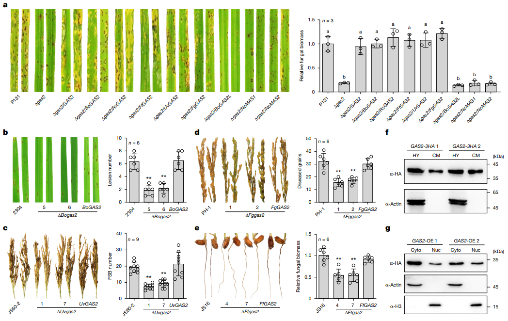 Gas2效应蛋白在多个水稻真菌病原菌中功能保守