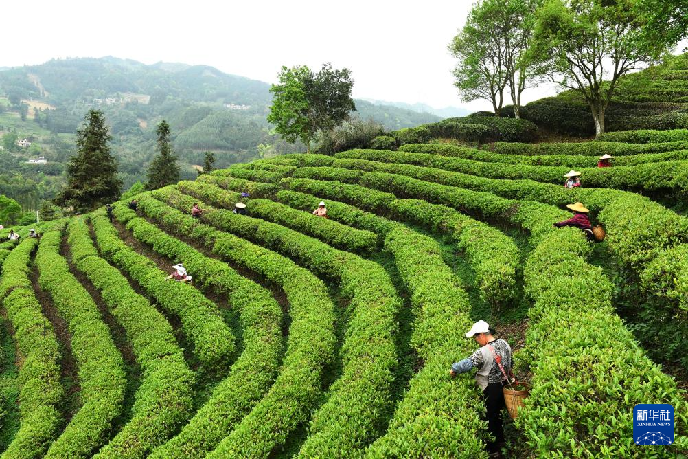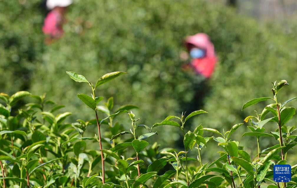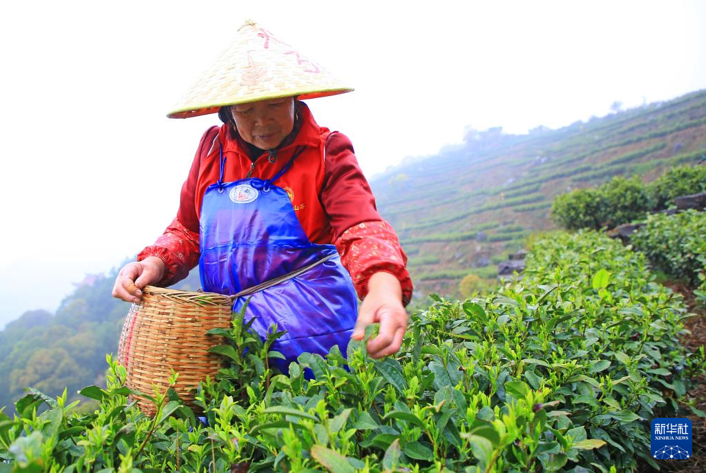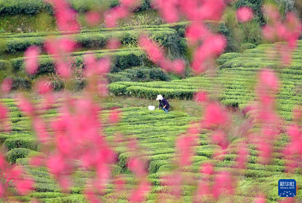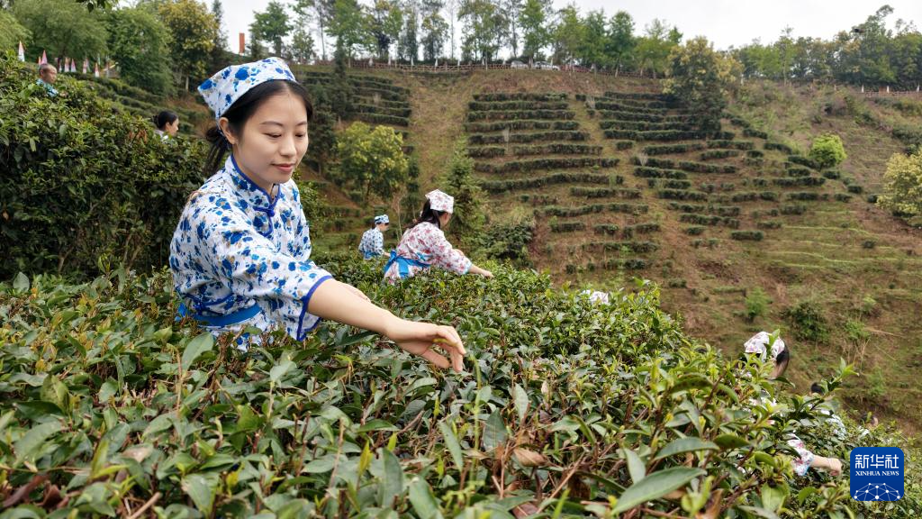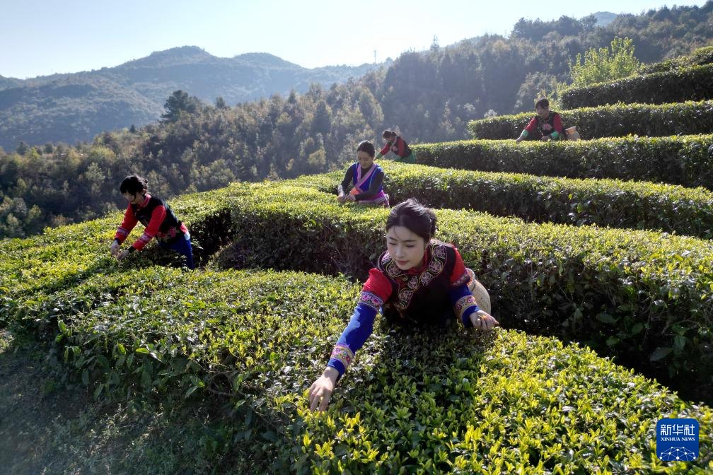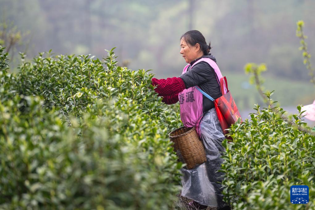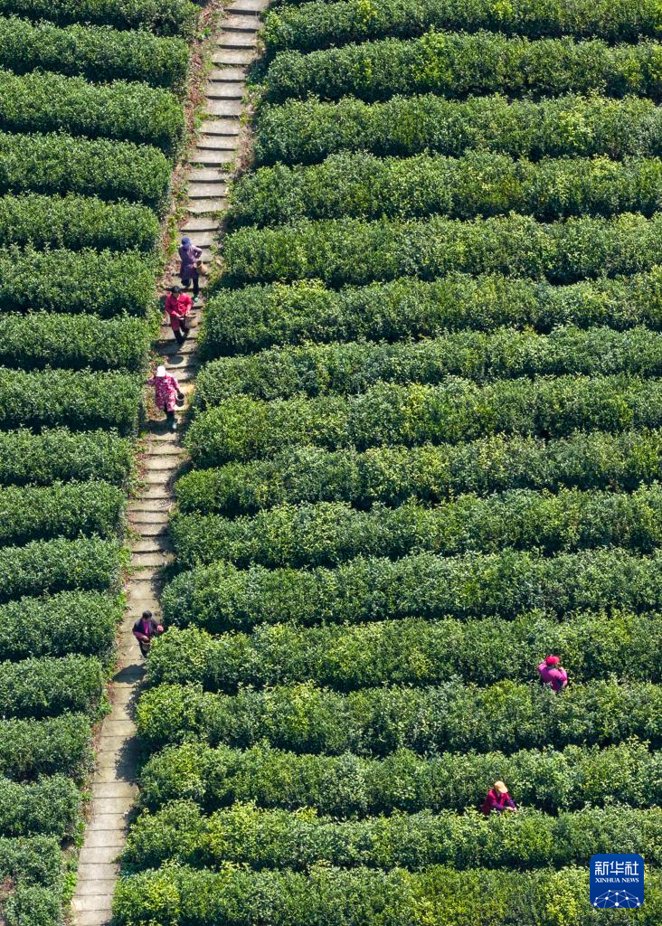 3月28日,茶农在三峡库区湖北省宜昌市秭归县茅坪镇长岭村一茶园采摘明前茶。