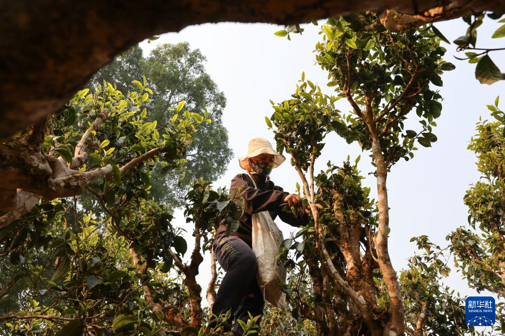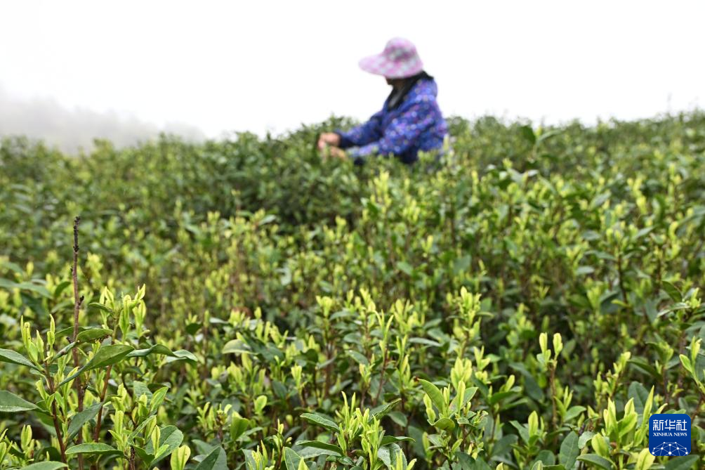 3月28日,云南省勐海县勐混镇贺开村茶农在采摘明前茶。