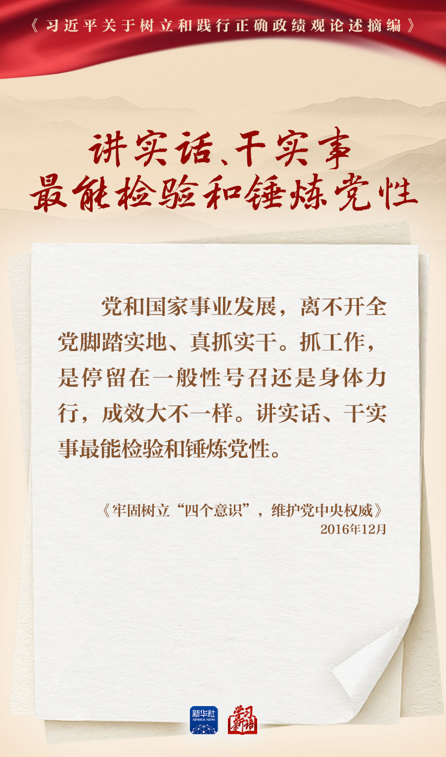 树立和践行正确政绩观学习教育正在全党开展。真抓实干,是共产党人的鲜明品格,也是成事之道。我们选取《习近平关于树立和践行正确政绩观论述摘编》一书中的相关重要论述,一起学习领会。