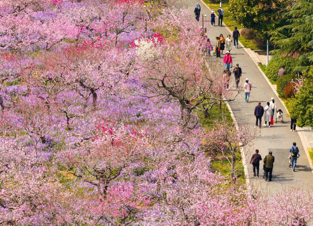 3月28日,游客在江苏淮安桃花坞公园赏花游玩。新华社发(贺敬华 摄)