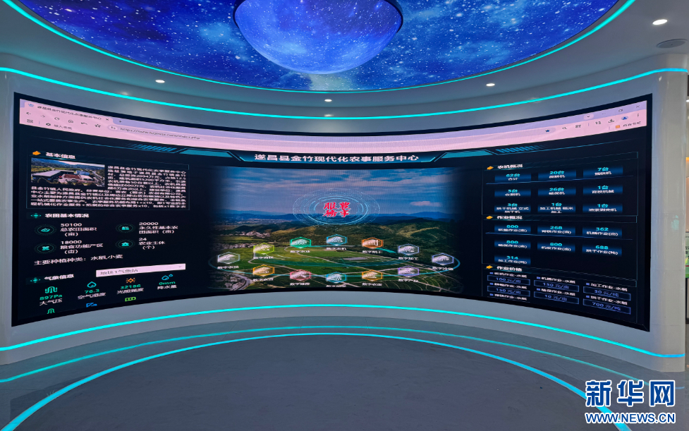 3月19日,遂昌县金竹现代化农事服务中心的驾驶舱数字服务界面展示着各类信息。新华网发 尹凌霄摄