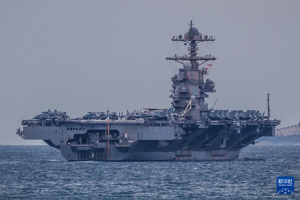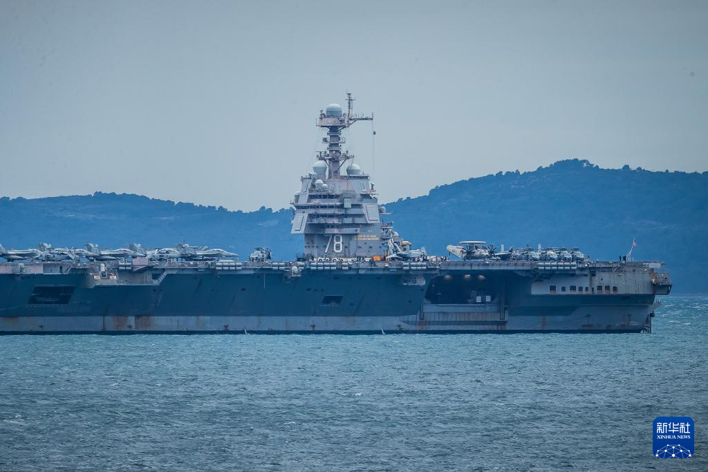 4月2日,美国海军“福特”号核动力航母离开克罗地亚斯普利特港。新华社发(Pixsell图片社/兹沃尼米尔摄)