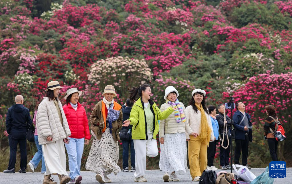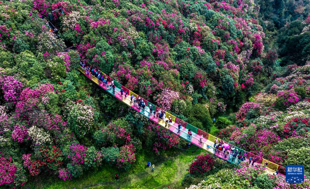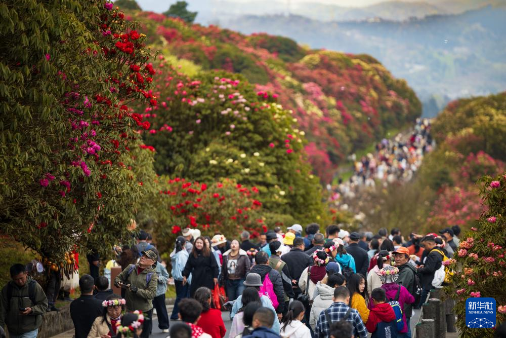 “几日春风又春雨,杜鹃依旧映山红。”这是清代阮元描绘杜鹃花的诗句。近日,贵州省毕节市百里杜鹃管理区内的杜鹃花迎来盛花期。