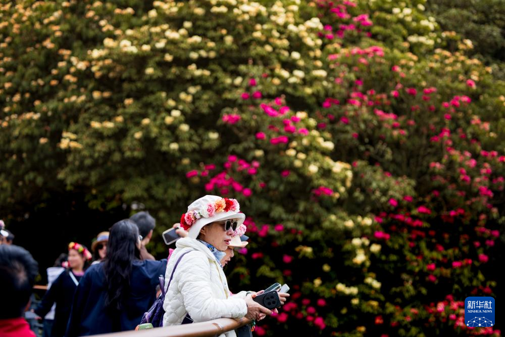 4月1日,游客在百里杜鹃管理区金坡景区赏花观光。
