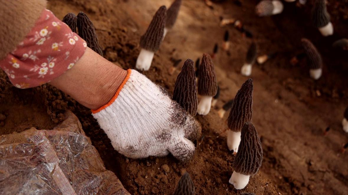 村民们采摘羊肚菌