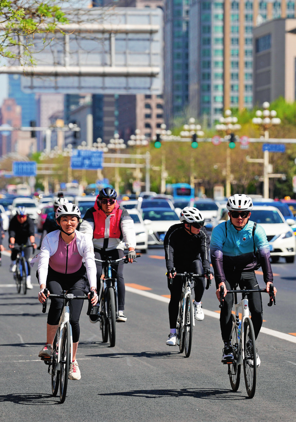 骑行爱好者在北京长安街上骑行(资料照片) 鞠焕宗摄/本刊