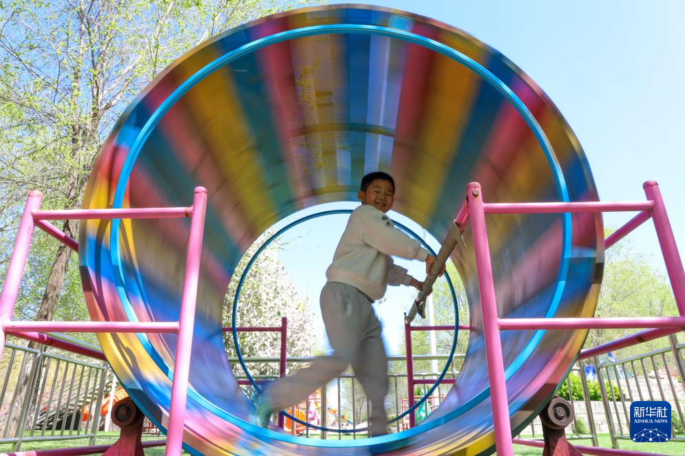 4月4日,小朋友在山东省聊城市茌平区杜郎口镇玩耍。