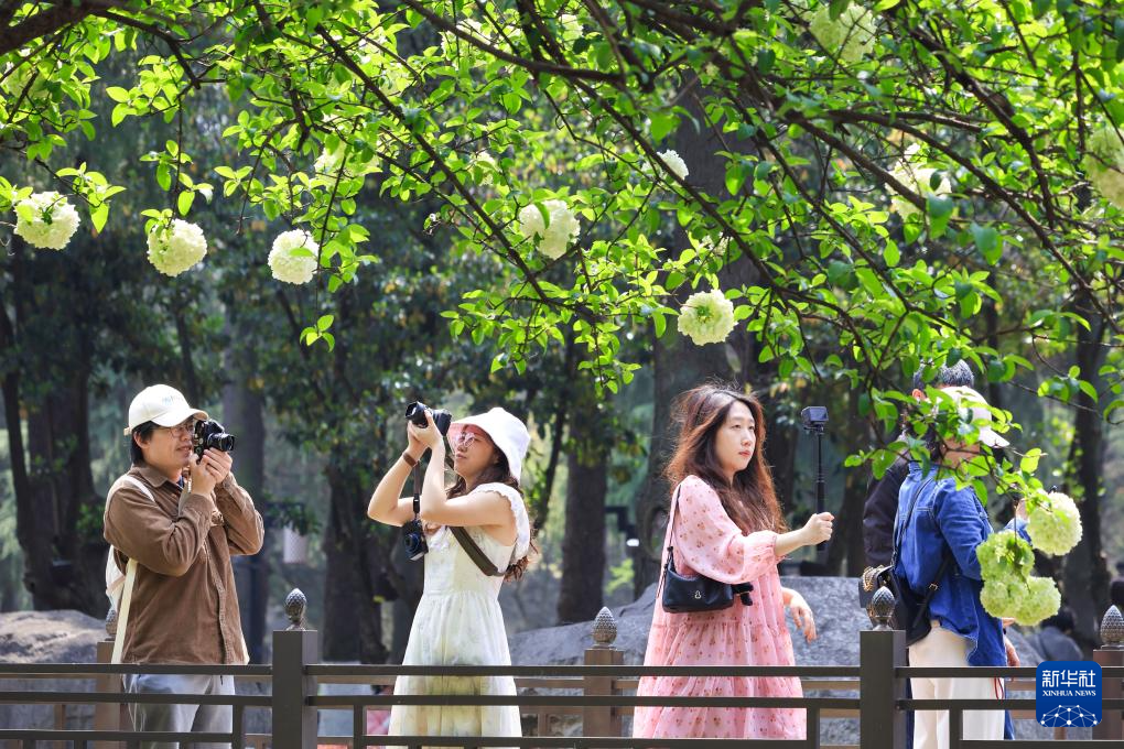 4月4日,游客在江苏省南京市午朝门公园赏花拍照。