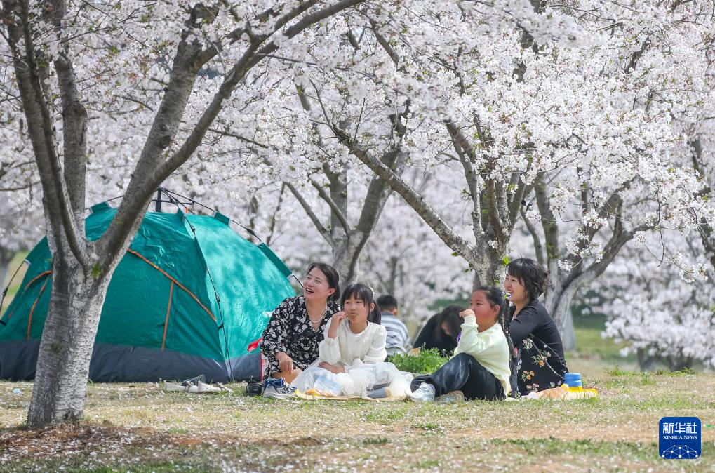 4月2日,人们在江苏省句容市白兔镇露营休闲。