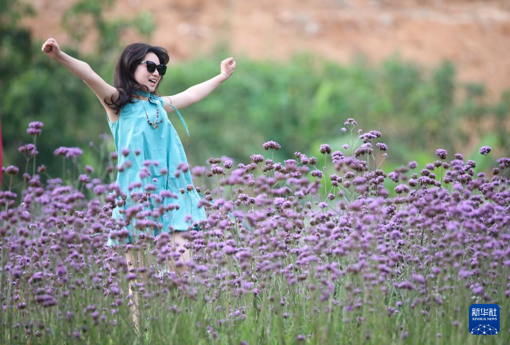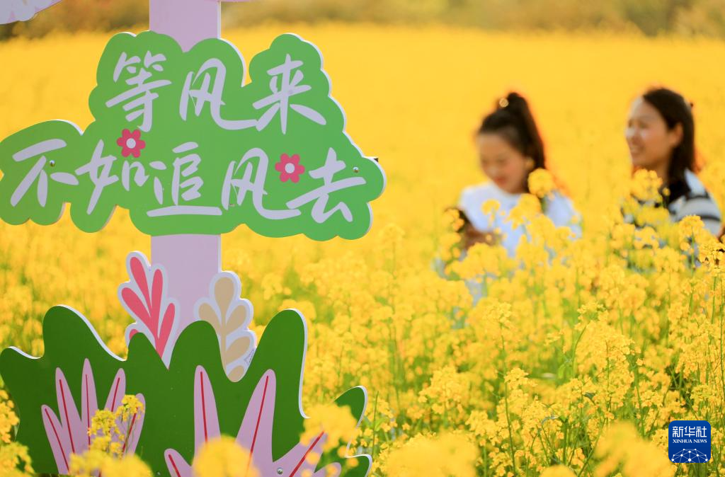 3月31日,游客在云南省景洪市曼沙村的花海中赏景拍照。
