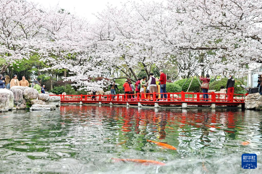 3月31日,游客在浙江省嘉兴市南湖区一处樱花园内赏花游玩。